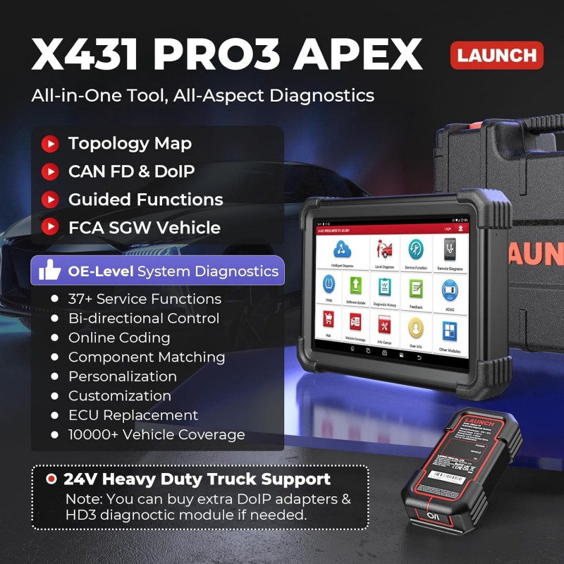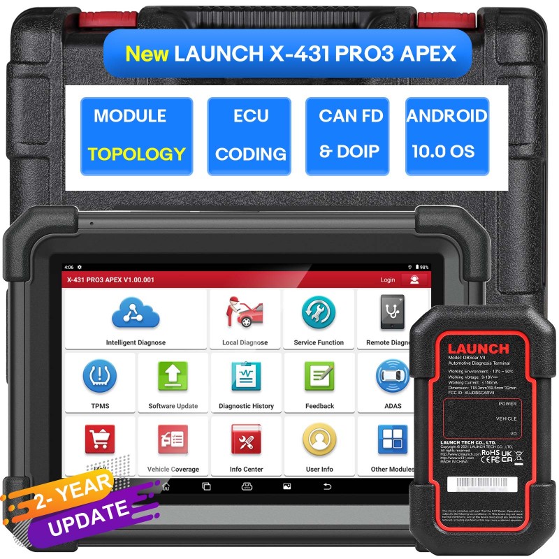 LAUNCH X431 PRO3 APEX All-System Diagnostic Scan Tool for Mechanics Online Coding, Topology Map, CAN FD & DoIP, 37+ Services