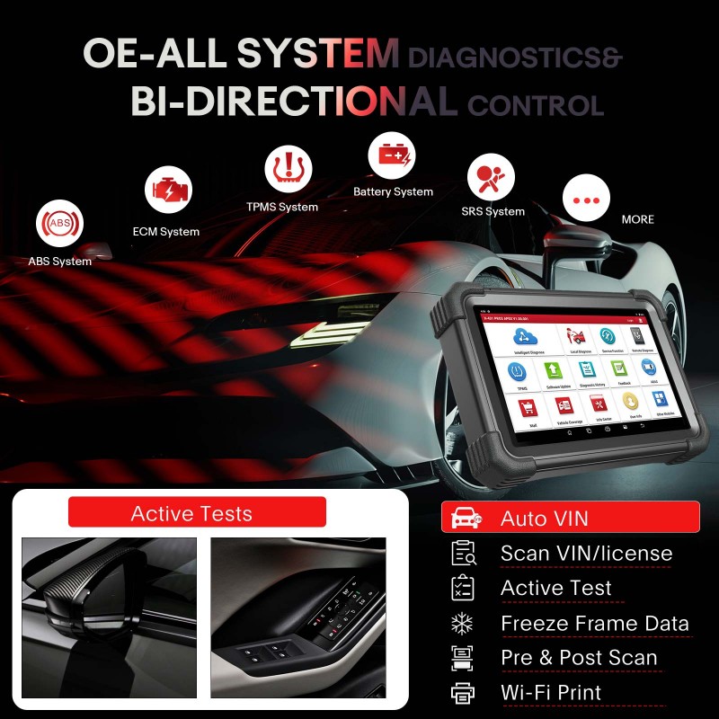 - Bi-directional Control: Operate active tests to quickly pinpoint problems and improve diagnostic efficiency.